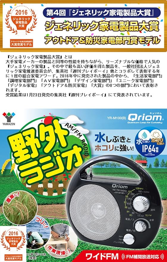 山善(YAMAZEN) キュリオム 野外ラジオ ポータブルラジオ (AM/FM) 防塵・防まつ仕様 YR-M100(B)