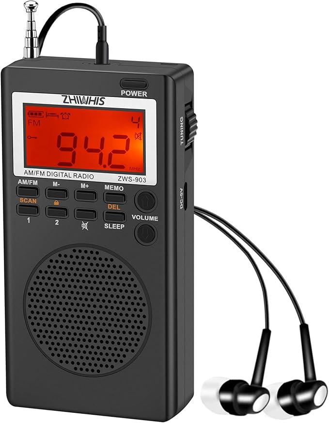ZHIWHIS 防災ラジオ FM/AM/ワイドFM対応 小型 乾電池式 選局ダイヤル/タイマー/デジタル時計/自動電源オン/キーロック/プリセット 携帯DSPステレオ受信機 ポータブル 軽量 コンパクト 通勤 防災 旅行 新登場ZWS-903