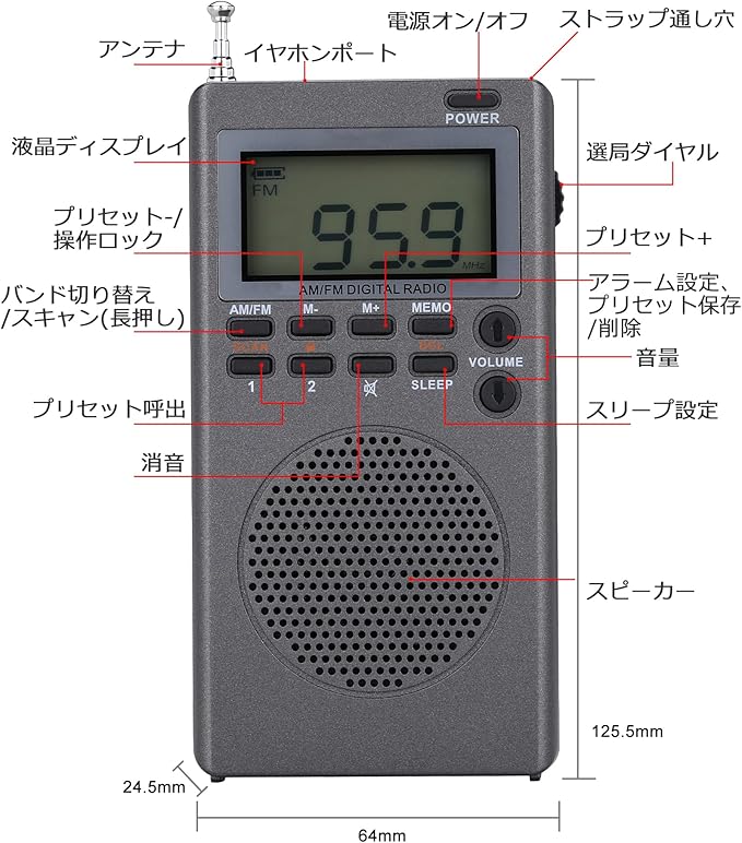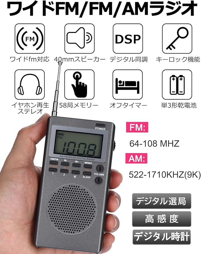 【メモリーラジオ】FM, AM それぞれ58局まで自動/手動プリセットできます。また、保存されているラジオ局を削除する機能もあります。誤作動防止のキーロック機能もある。製品について、何かご質問・ご意見がございましたら、遠慮なくご連絡ください。