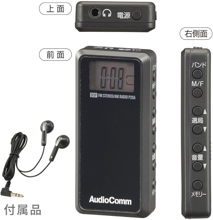 オーム(OHM) 電機AudioComm ラジオ 小型 ライターサイズラジオ ポケットラジオ デジタル DSPラジオ ライターラジオ ATS自動選局 メモリー登録 携帯ラジオ 通勤ラジオ イヤホン付き FMステレオ ワイドFM対応 ブラック RAD-P255N 03-7234