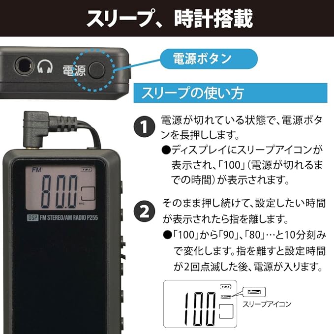 ※ 本機はスピーカーのないイヤホン専用ラジオです。