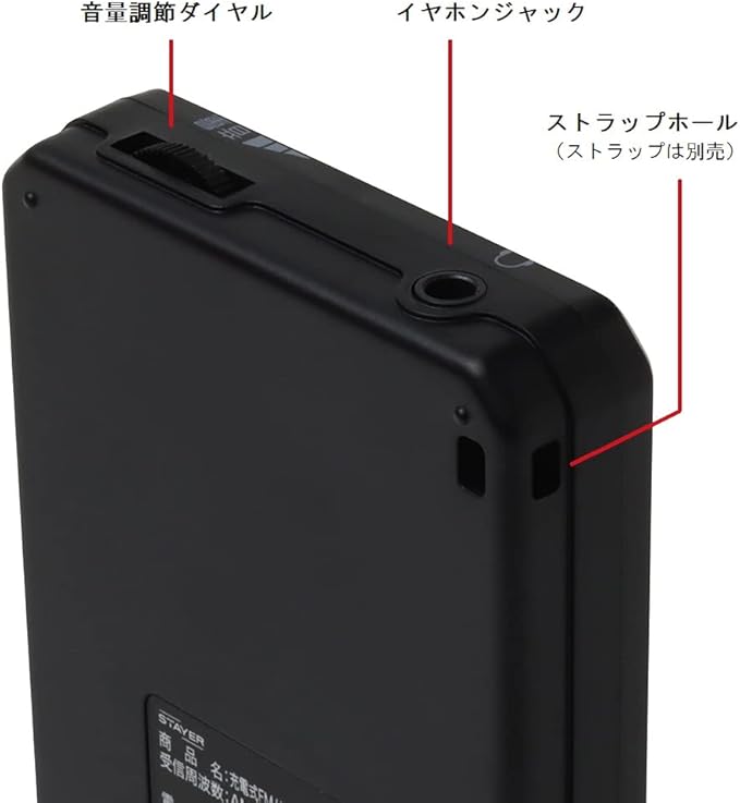 【STAYER】充電式AM/FMポケットラジオ ワイドFM対応 S-BPRDシリーズ (ブラック)