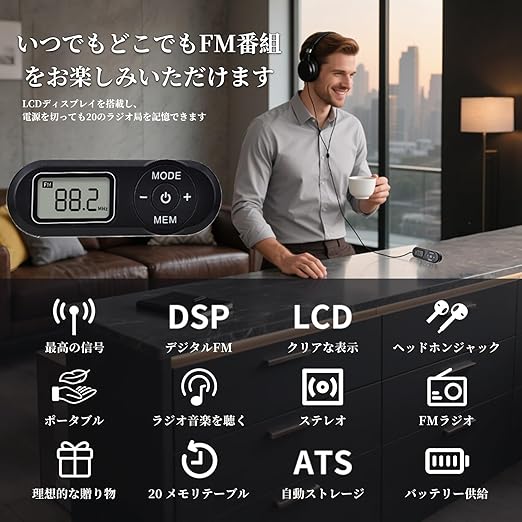 このDSPラジオは、ラジオ 小型、ポケットラジオ、スタイリッシュなデザインとコンパクトな設計、そしてパワフルな音量を誇ります。デジタル信号処理を採用し、安定した受信を実現します。このミニデジタルラジオは、高感度を誇り、見やすい高解像度LCDディスプレイ、自動チャンネルサーチ、電源オフ時のメモリー機能を備えています。1.1インチLCDには、FM周波数、音量調整、チャンネルメモリー位置が表示されます。シンプルで直感的なボタン操作で、最大限の利便性を提供します。