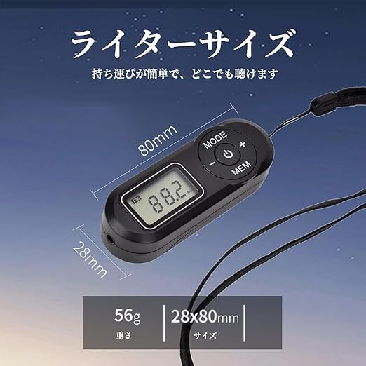 2.ラジオ 小型:コンパクトなボディで片手で操作可能です。防災リュック・作業服などにストラップで固定したり、車両やキーホルダーに掛けたりできるので、いつでもどこでもお気に入りのラジオ番組を手軽にコントロールできます。