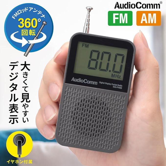 【 特 長 】 ◆大きくて見やすいデジタル表示、ダイヤル選局式 ◆バックライト付き液晶表示で、暗い場所でもらくらく選局 ◆モノラル受信 ◆イヤホン/スピーカー2WAY出力 ◆片耳モノラルイヤホン付属 ◆360 回転式FMロッドアンテナ ◆ワイドFM(FM補完放送)対応