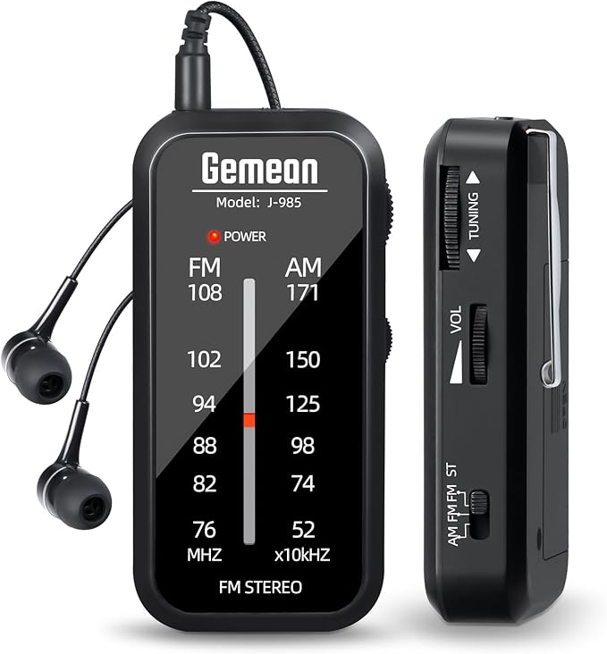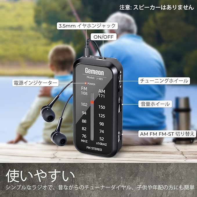 Gemean J-985 ラジオ 小型 高感度 受信 ミニAMFM 3.5mm イヤホン付き 使いやすい 小さい 持ち運び便利 携帯 単四電池駆動(黒)