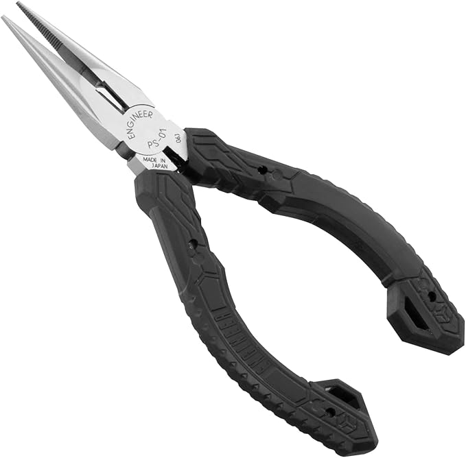 商品紹介 精密作業に適したニードルノーズタイプです。先端の内側はギザ付で、細かなチップやパーツも滑らずしっかりと保持します。グリップは環境に優しいエラストマーを使用し、手によくフィットするとデザイングリップです。静電気(ESD)対策を施しています。 (表面抵抗値 :1 10 (6乗)~10 (7乗) Ω)※絶縁工具ではありません。【用途】細かい部分の作業、銅線や細かい針金の曲げ、切断、精密細工に。【サイズ】本体:139 51 11mm/先端長:37mm/先端幅:13mm/先端厚さ:8mm【重量】68g【切断能力】銅線:φ2mm 【刃部硬度】HRC58 4 【材質】高炭素鋼 Amazonより ●先端の内側はギザ付で、細やかなチップやパーツも滑らずしっかりとホールドできる ●本体は入念な焼入れにより耐急性に優れている ●手に優しいエラストマーグリップを採用 ●静電気対策を施したESD対応グリップ採用。(表面抵抗値:1 106~107Ω)
