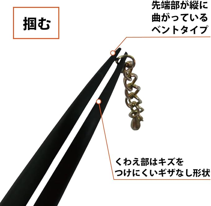 高精度加工により、対象物をしっかり掴めるので、ピンセットの代わりに使えます