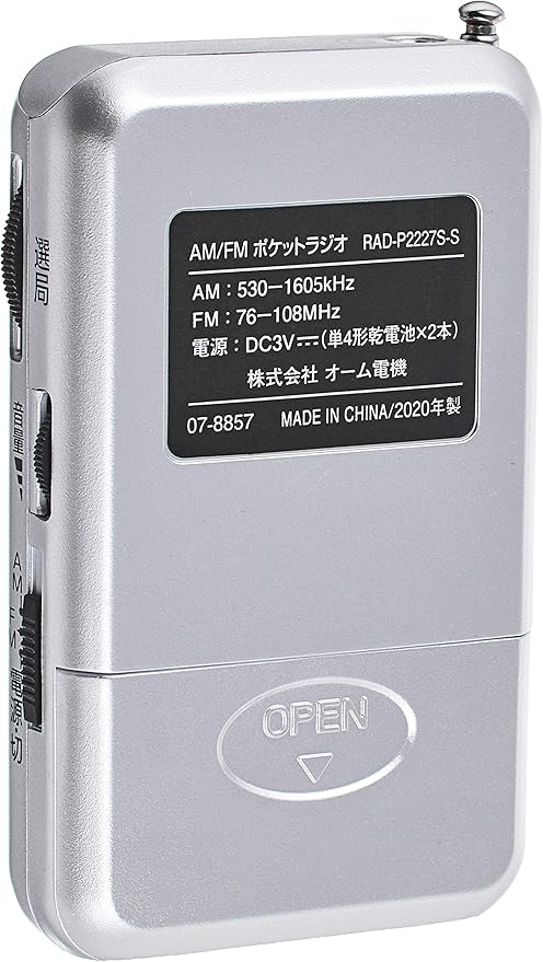(薄型・軽量・イヤホン付属) AM/FM/ワイドFM対応 ポケットラジオ オーム電機 RAD-P2227S-S(シルバー)