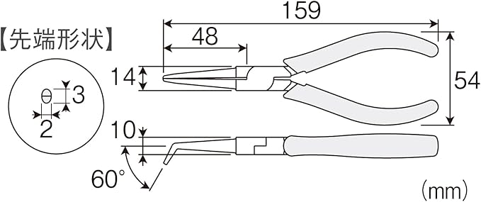 ・【硬度HRC】先端部:45【重量】115g【全長】159mm【用途】電線、鉄線、銅線の掴み・曲げ、電子機器や精密機械の組み立て・修理、電子工作、プラモデル・模型・アクセサリーの製作、ワイヤーワーク、釣り針の製作や修理