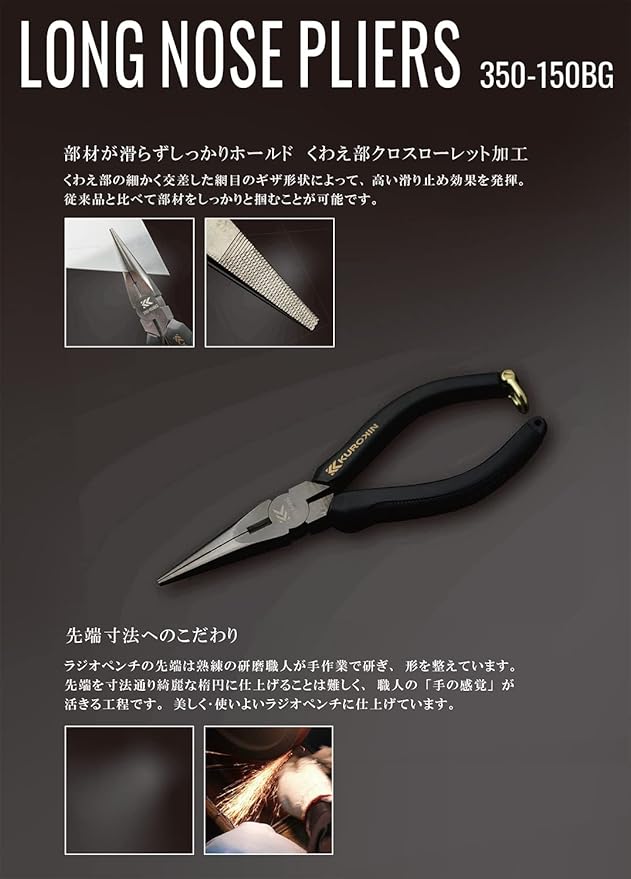 フジ矢 ラジオペンチ 黒金 クロスローレット加工 350-150BG