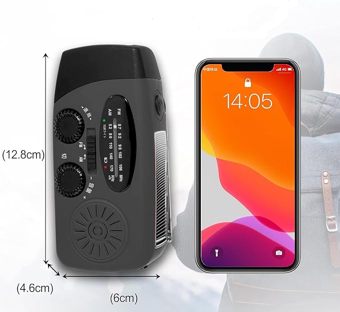 【軽量コンパクトで持ち運び便利】235gの軽量設計で、サイズは12.8x6.0x4.5cmとコンパクト。緊急時に簡単に持ち運べるため、防災バッグやキャンプ用品としても便利です。ソーラー充電や手回し充電機能により、電力がない環境でも安心して使用できます。