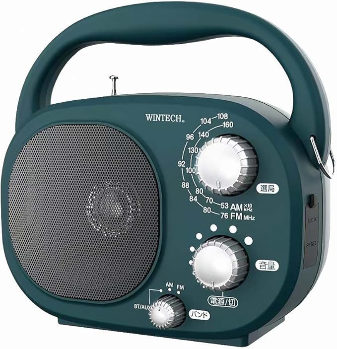 WINTECH(ウィンテック) AM/FM 防水ラジオ【現場ラジオコンパクト】GBR-7CBT ブルーグリーン Bluetooth接続&外部入力端子装備 お風呂 防災 アウトドア 農作業 工事現場 単一乾電池 4本(別売) 廣華物産