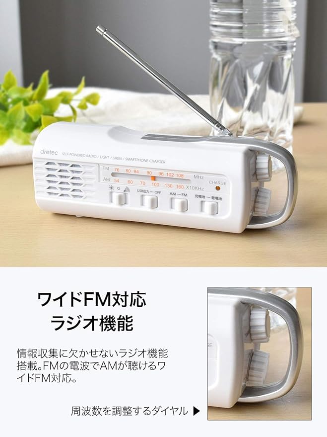ドリテック(dretec) さすだけ充電 ラジオライト ホワイト PR-321WT
