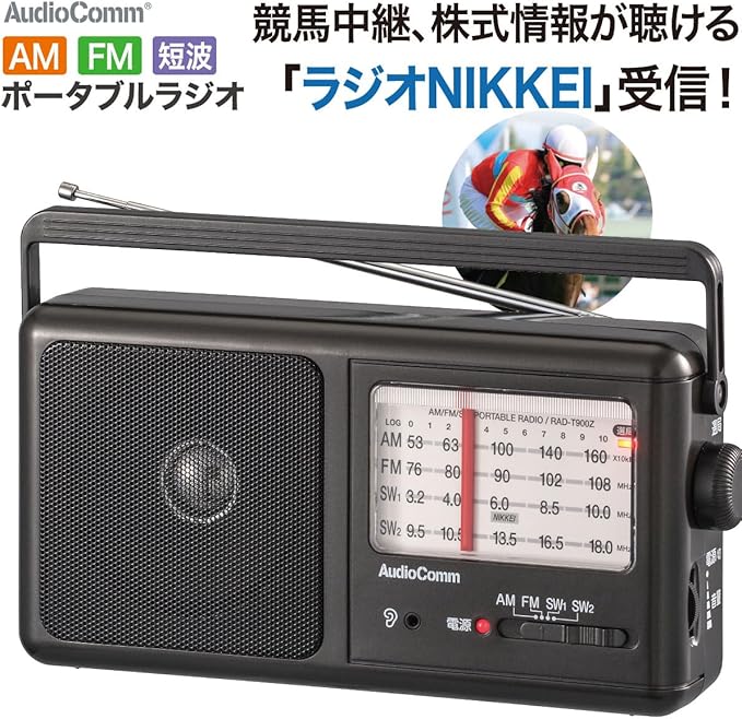 オーム(OHM) 電機AudioComm 短波ラジオ 海外放送 競馬 株式受信 ポータブル短波ラジオ 短波受信 ラジオNIKKEI ラジオ日経 AM/FM ワイドFM RAD-T900Z 07-9819