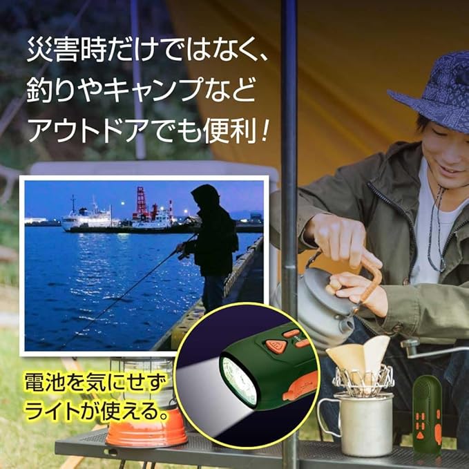 【電池不要1分間の手回しで即使用可能】停電時も安心の手回し発電機方式。たった1分の手回し充電でLED照明やラジオが即使用可能。防災グッズの要となる緊急災害用ラジオとして最適です。