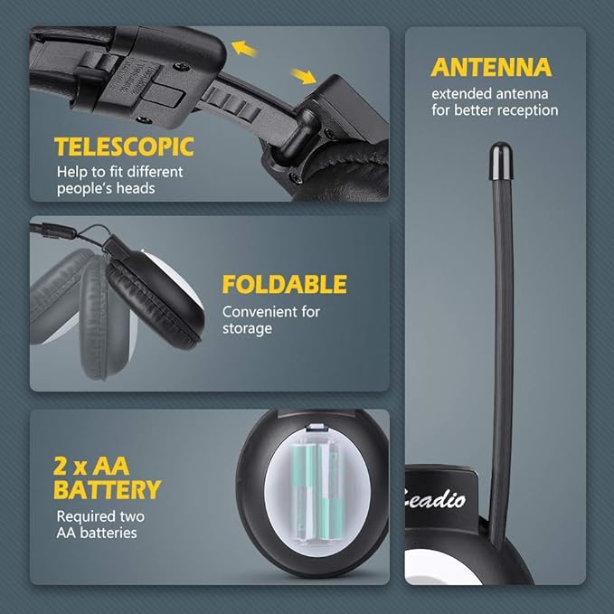 Zeadio ヘッドホンラジオ、FMステレオヘッドセットラジオレシーバー、電池式、学校の会議などに最適