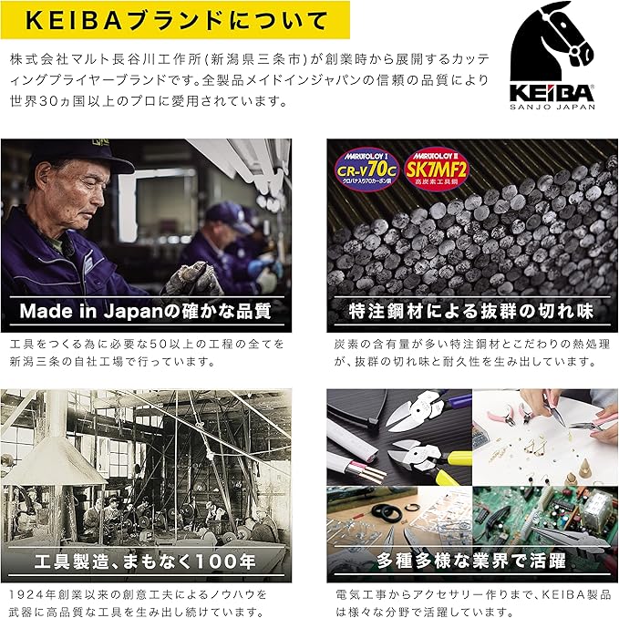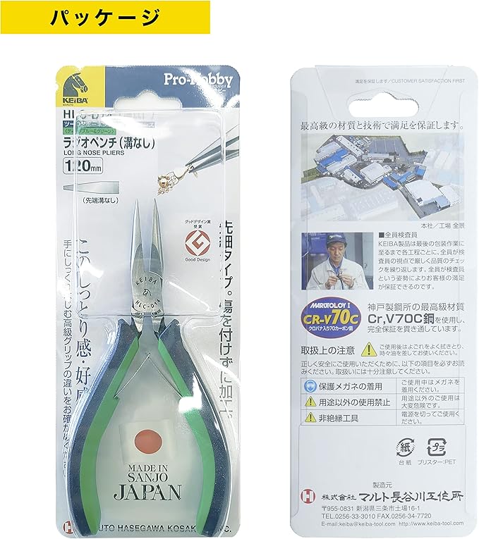 Maruto Hasegawa kosakujo マルト長谷川工作所 ケイバ(KEIBA) プロホビー ラジオペンチ 溝なし (切断刃なし) HLC-D14