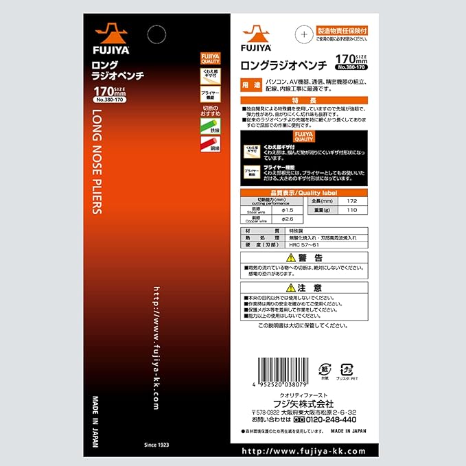フジ矢(Fujiya) ロングラジオペンチ 細かい作業に最適な先細仕様 (プライヤー機能付) 170mm 380-170