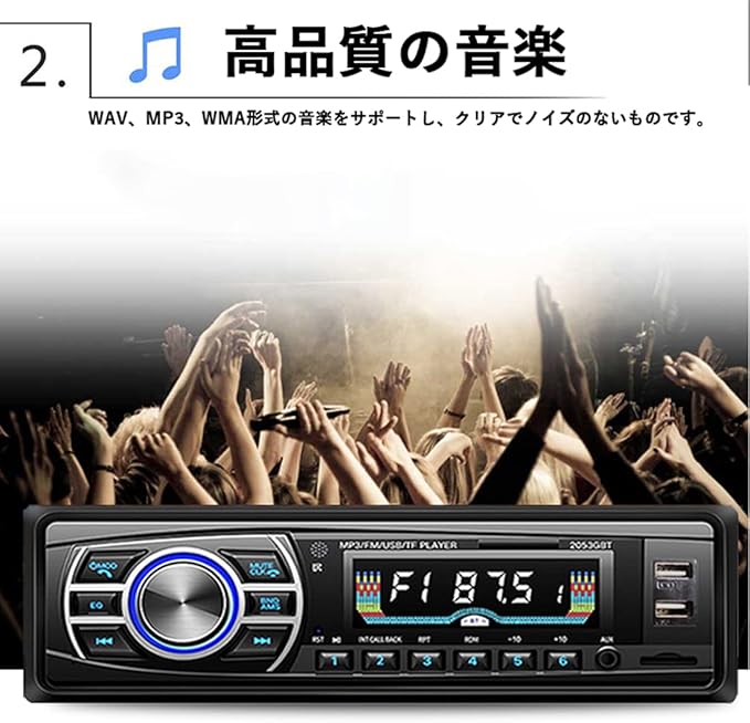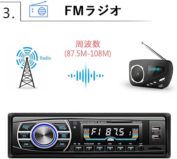 電子チューニングラジオ機能、自動受信、電源オフメモリのストレージサポート。 カーゲージLEDディスプレイ技術、ディスプレイは非常に明るいですが、光沢は柔らかく、まばゆいばかりではありません。