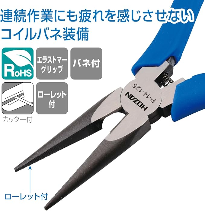ホーザン(HOZAN) ラジオペンチ 連続作業にも最適なコイルバネ装備 すべり止めのローレット付 P-14-125