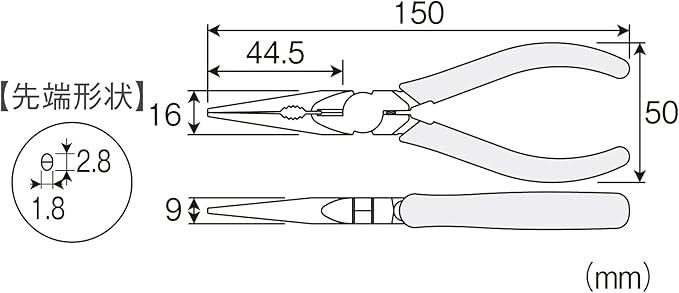 コンパクトな汎用型ペンチ。先端が細く、細かい作業に最適。