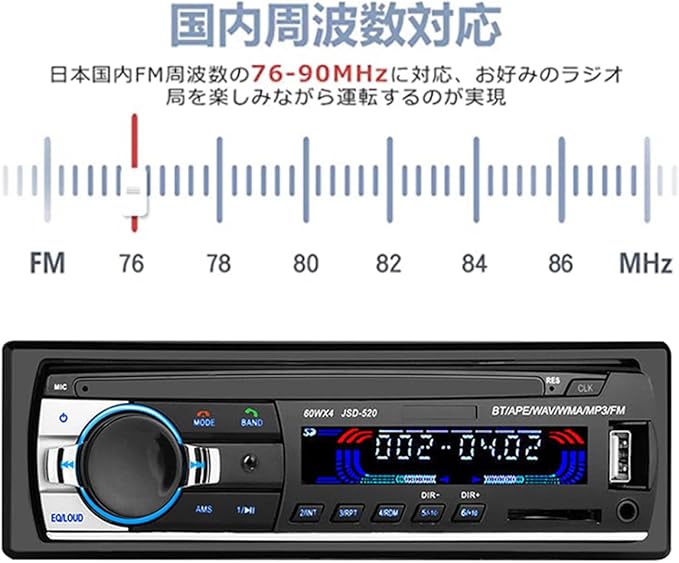 ♪【日本国内周波数対応!】最新版のデザインより、FMバンドを日本国内バンドの76-90MHzに改良され、お好みのラジオ局を楽しみながら運転するのが実現されます!注:ラジオは標準の1ピンサイズです(フロントボードのサイズは約19 * 6cm、リアのサイズは約18.5 * 7.5 * 5.5cmです)。 ご購入前にカーラジオのオリジナルサイズをご確認ください!