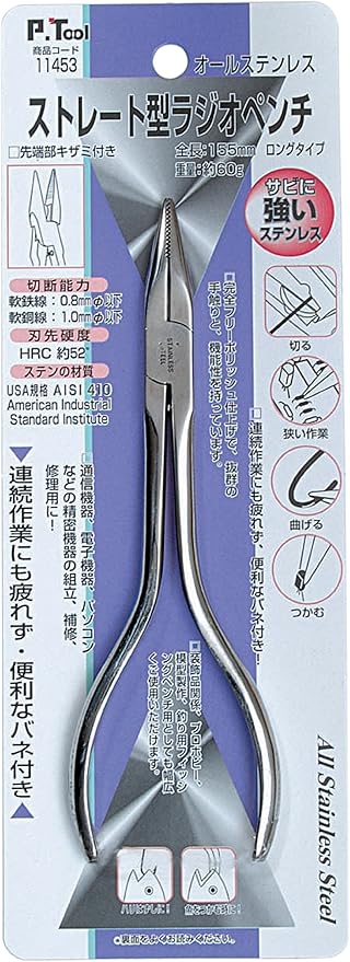 イチネンアクセス P.Tool(ピーツール) ペンチ ストレート型 ラジオペンチ 155mm 11453 オールステンレス ロングタイプ