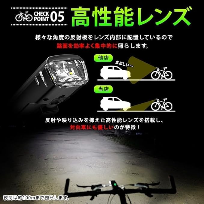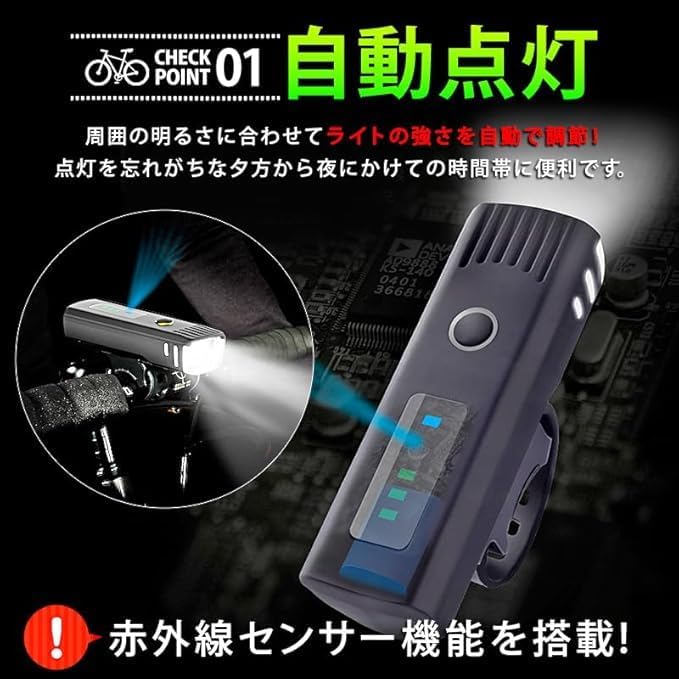 自動点灯 光センサー 自転車ライト USB充電式 4モード 2000mAh IP65防水 1000ルーメン IPX4防水 Type-C充電