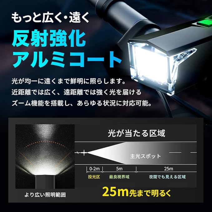 【Type-C急速充電&バッテリー残量表示】 最新のType-Cポートを採用し、約3時間でフル充電可能。最大24時間の連続点灯を実現し、長距離ライドや通勤・通学にも安心してお使いいただけます。LEDインジケーターでバッテリー残量をひと目で確認でき、突然の電池切れを防止します。