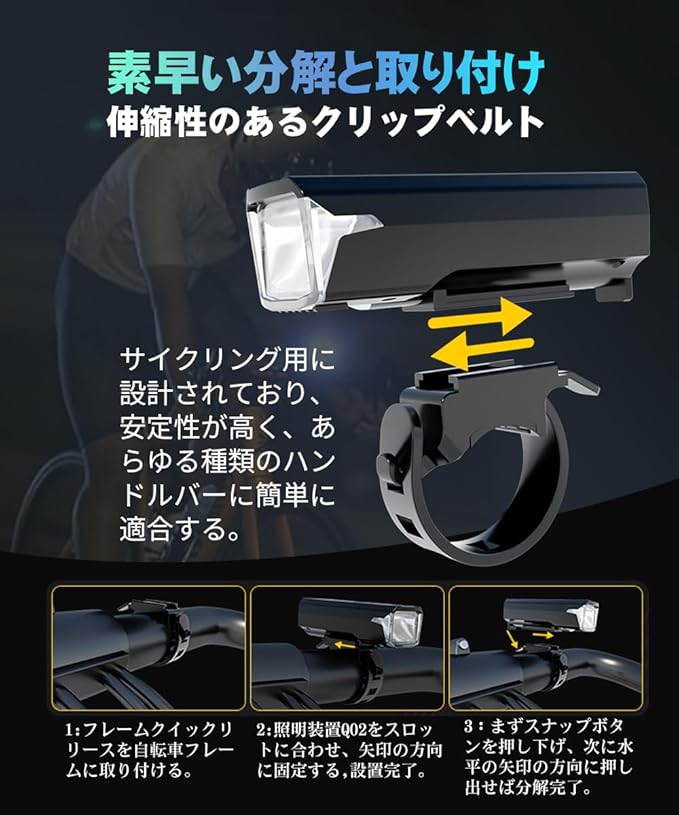 【IPX7防水規格、取り付け・取り外し簡単】IPX7規格の防水・防塵性能により、激しい雨天時でも水、埃、泥の侵入を防ぎ、あらゆる環境で走行できます。伸縮性のあるクリップとバックル設計により、充電が容易になり、盗難防止にもなり、快適なライディング体験を提供します。