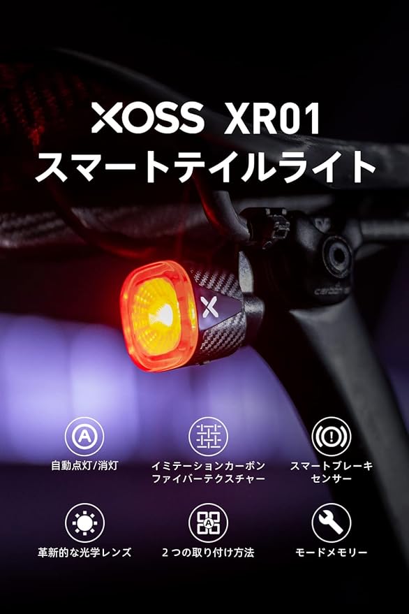 XOSS XR01 自転車テールライト IPX6防水 リアライト Type-C充電式 自動点灯 ブレーキセンサー付き テールランプ セーフティライト 軽量 日本語説明書