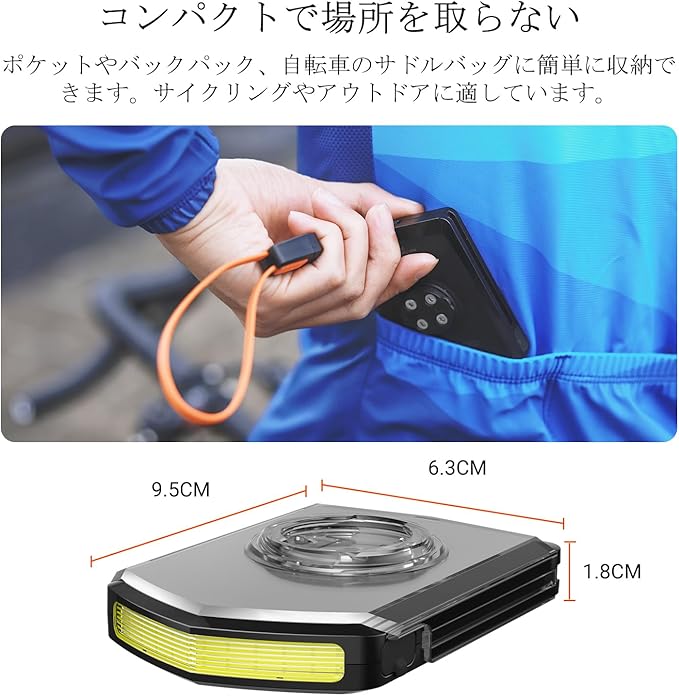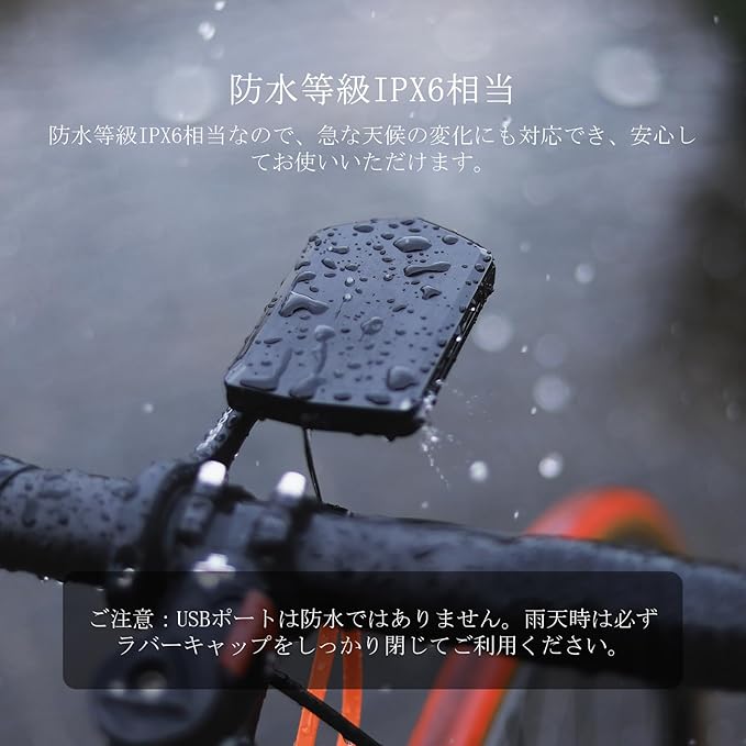 小型ながら強力:軽量コンパクトサイズで、小さなカバンやポケットにもすっきり収まります。IPX6相当の防水性能を備えており、急な雨でもライトは正常に機能します。屋外のサイクリングにも最適です。