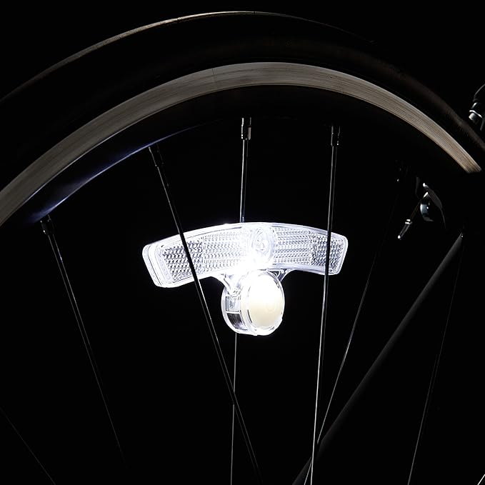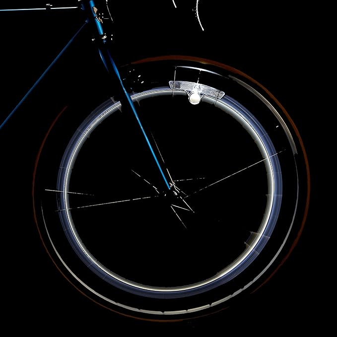 ホイールリフレクターと白色LEDで側面の安全性を高め、自転車事故を防ぐ。