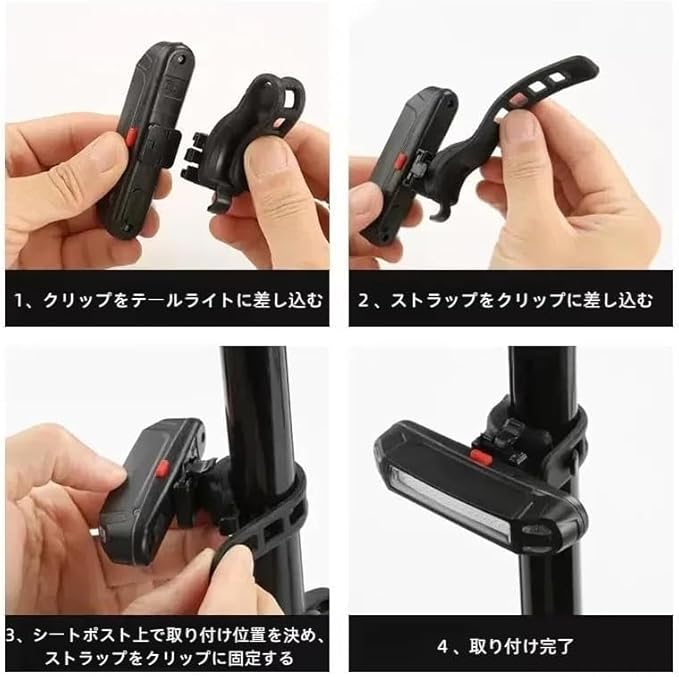 【リピート人気商品】海外でも人気のテールライトは、COB LEDを搭載し、最大出力100ルーメンで、最大で約6時間使用できます。USB充電式なのでモバイルバッテーリー等でどこでも充電出来ます。