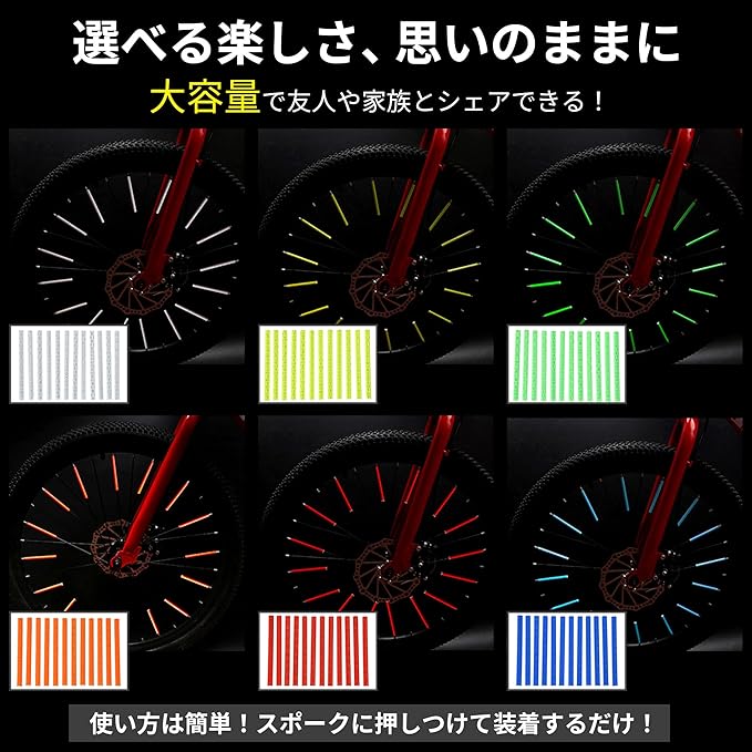 自転車 リフレクター 反射版 【36本入り 大容量】 夜間 可視 通学 サイクリング スポーク 防犯 リア フロント クロスバイク マウンテンバイク ホイール 子供 車椅子 安全