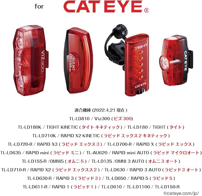 適合機種に記載のある CATEYE(キャットアイ) SAFETY LIGHTS (セーフティライト)が対応・アダプターの先端(ライト接合部)は付け替え可能なので向きの変更が可能。