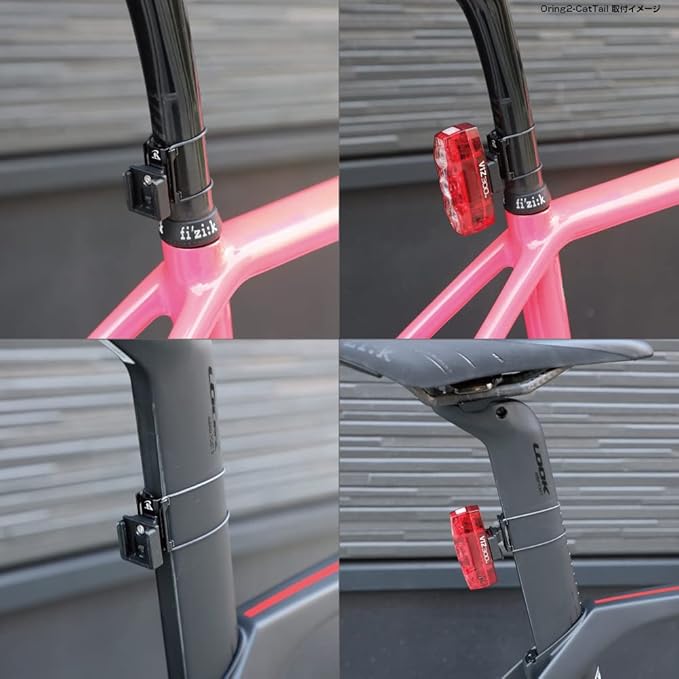 Oリング型・カムテール形状(D型)や25.0mm-35.0mmまでの丸い形状のシートポスト向けのセーフティライトマウント