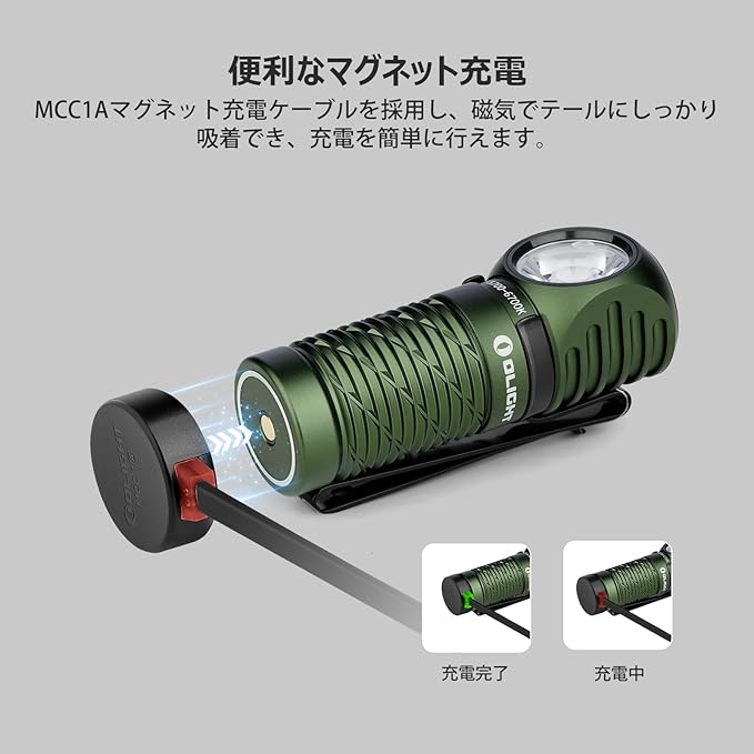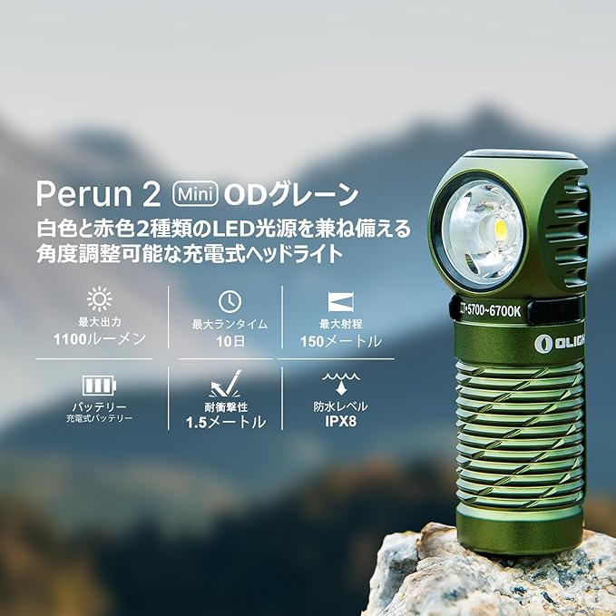 OLIGHT(オーライト) Perun 2 Mini ヘッドライト 懐中電灯兼用 高輝度led 1100ルーメン フラッシュライト 角度調整可能 充電式 IPX8 防水 耐衝撃 軽量 防災 散歩 登山 アウトドア 作業灯 夜釣り 停電対策 アーミーグリーン(コールド ホワイト 5700~6700K)