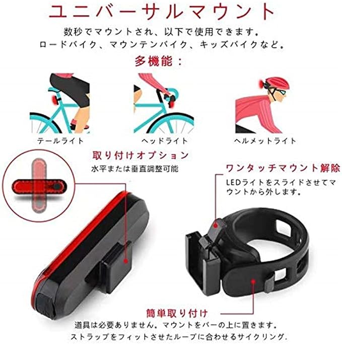 Volcano Eye 自転車 テールライト 2個セット USB充電LEDライト 防水点滅サイクルライト 4点灯モード セーフティーライト 夜間走行の視認性をアピール 簡単装着 (あかい)
