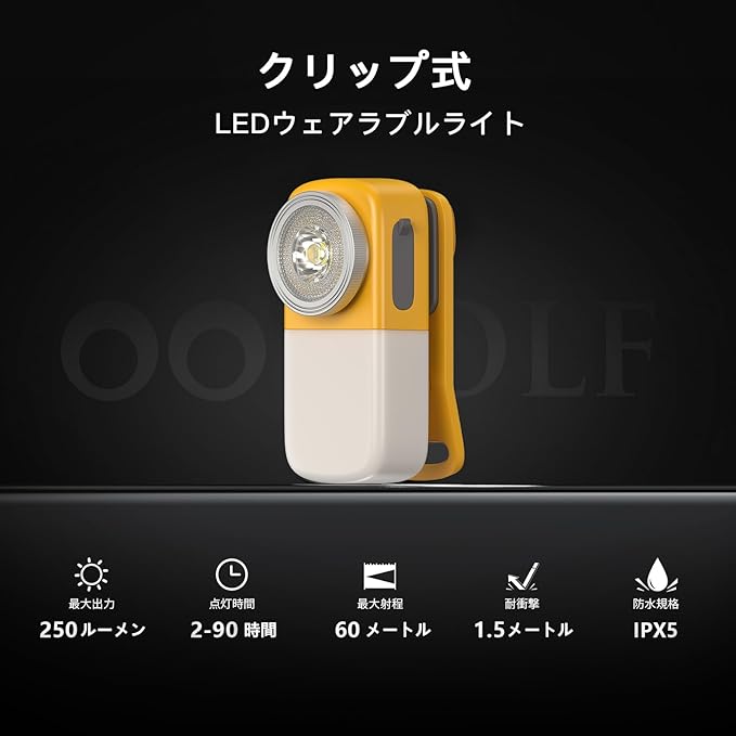 OOWOLF LED 懐中電灯 ミニ クリップオンライト 小型 Type-C充電式 ウェアラブルライト 白光&赤光 キャップライト 磁気 夜釣り 点検 犬 散歩 キャンプ サイクリング ハイキング アウトドア ハンディライト 登山 防災 停電対策 イエロー