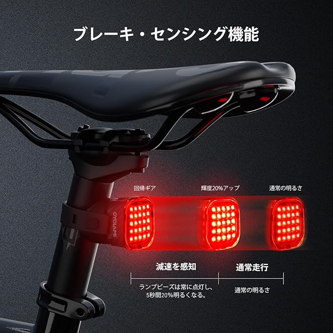 CYCLAMI 自転車 ライト 自転車 テールライト ブレーキランプ- 60ルーメンの超高輝度自転車リアライト、ブレーキセンサーテクノロジー、4つのモード、IPX6防水、振動自動ウェイクアップ - 夜間サイクリングの安全性のための200メートルの視認性