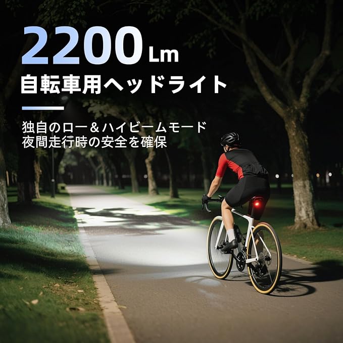 【超高輝度で夜間も安心】自転車用ヘッドライトは2000ルーメンの強力な光で、最大200m先まで照射可能で、明るく均一な光を提供します。もっと広範囲に照らし、前方の路面はもちろん、対向車や両側の歩行者の状況も確認しやすいです。自転車通勤や通学、サイクリング、街灯が少ない夜道でも心強い。また、キャンプ、登山、夜釣り、夜の散歩、停電時、非常時など、様々な場面に懐中電灯代わりに活用できます。