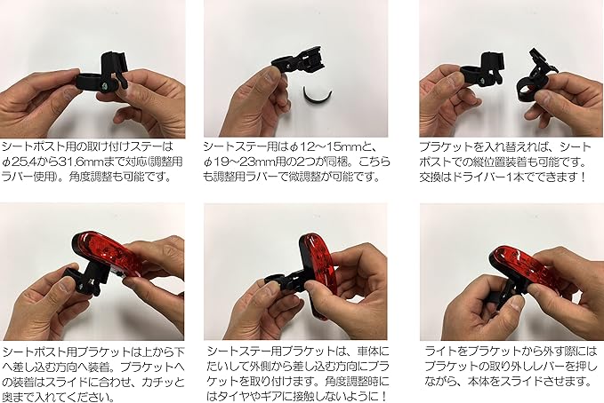 取付対応径:シートポストφ25.4~31.6mm / シートステーφ12~15mm、φ19~23mm