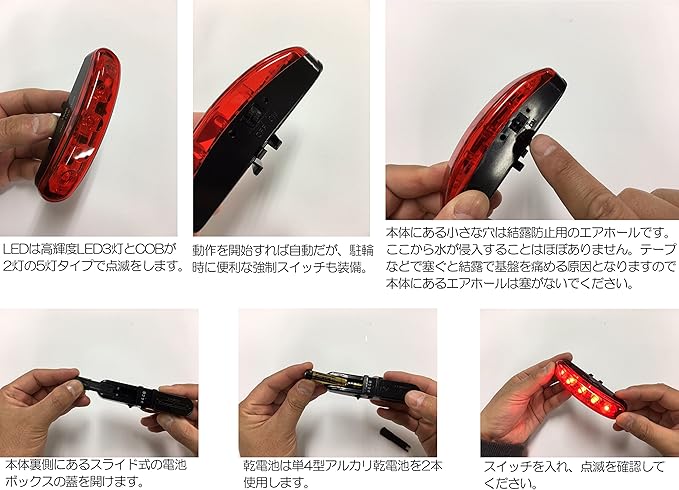 ボタン操作不要の点滅方式のフルオートテールライトで、