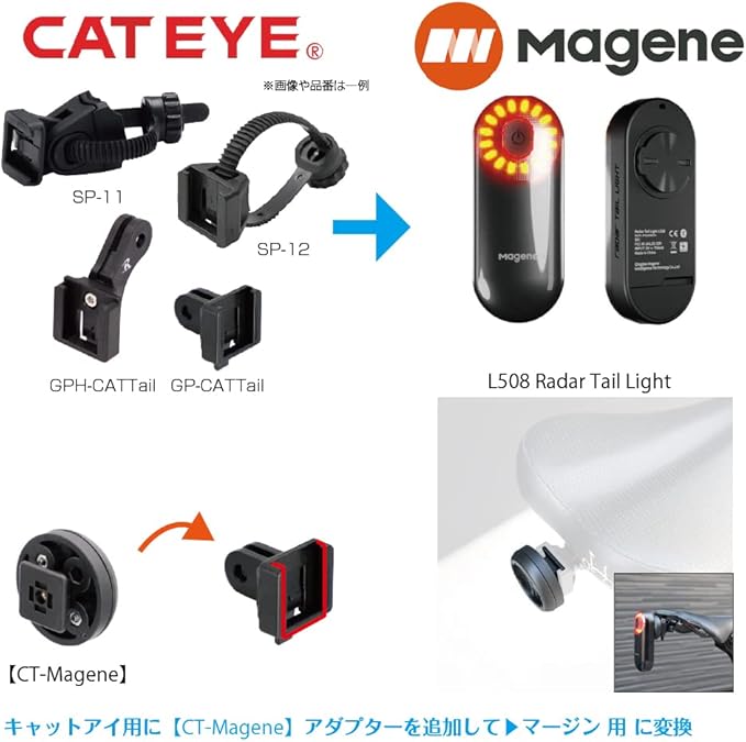 適合機種に記載のある Magene(マージン) L508 Rader Tail Light (レーダーテールライト) L308 インテリジェントテールライトが取付可能。※適合機種(2024.12.20現在)