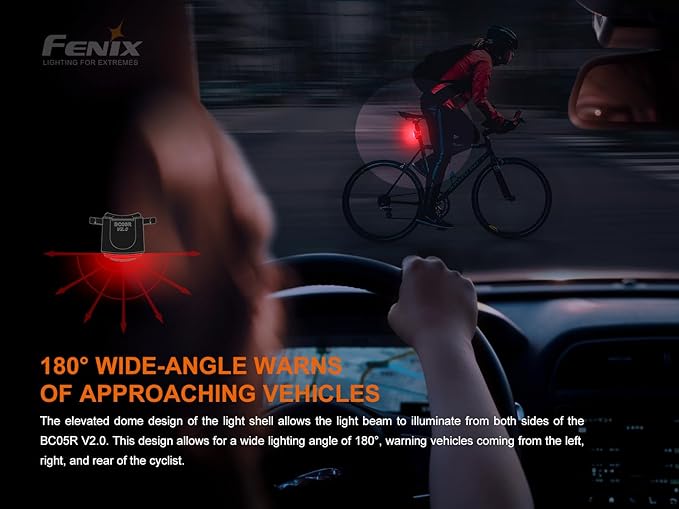 Fenix BC05R v2.0 充電式リアバイクライト | 15ルーメン | 50m | 最大120時間 | コンスタントモードとフラッシュモード | USB-C充電 | ランニング/ハイキング/ウォーキング用ボディクリップ | 180 広角 | IP66