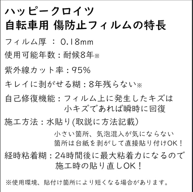 ハッピークロイツ 自転車用 フレーム 傷防止 ウレタン フィルム