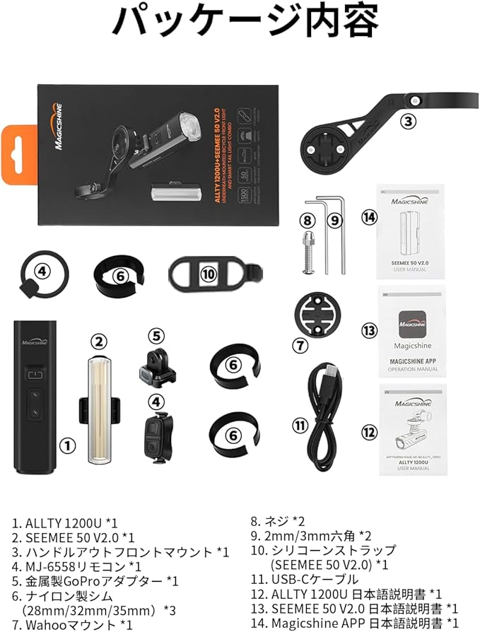 Magicshine 自転車ライトセット ALLTY 1200U 自転車用ヘッドライト& SEEMEE 50 V2.0 自転車テールライト