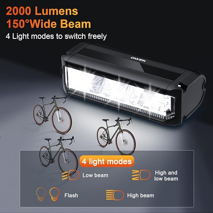 ONVIAN (オンビアン) 2000ルーメン 自転車用ヘッドライト 充電式 4つのLED自転車ライトモード 夜間走行用 頑丈なアルミ合金取り付け 自転車除雪機用 4輪車 サイクリング MTBヘッドライト ハンドルバーアクセサリー